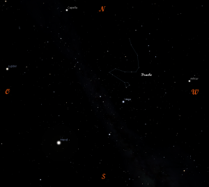 Mit etwas Glück könnten am 8.10. ab 18:00 die Draconiden -ein Sternschnuppenschwarm der scheinbar aus dem Sternbild Drachen kommt- sichtbar sein. Leider ist der Mond zu diesem Zeitpunkt bereits ziemlich hell.