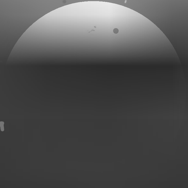 Weiterhin ist der Transit -so nennt man den Wanderung eines Planeten vor der Sonnenscheibe- auch nicht von überall auf der Erde sichtbar. Schließlich muss die Sonne dafür zu sehen sein. Es muss also Tag sein. Da der gesamte Vorgang jedoch mehr als 6 Stunden dauert, ist zumindest teilweise in vielen Gegenden zu erleben. Nur in Südamerika und im Osten Afrikas findet der Transit in der Nacht statt. In Deutschland können wir das Ende sehen. Das kann dann vielleicht so aussehen.