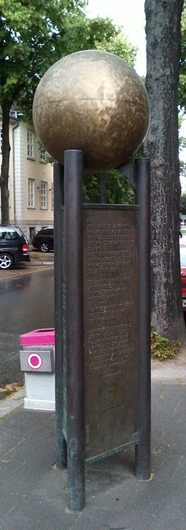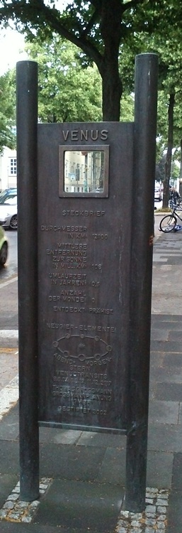 Einige Schritte weiter beginnt eine weitere astronomische Sehenswürdigkeit. Dieser „Planeten-Weg ist den Kindern gewidmet und unserer Partnerstadt Torun – Thorn, deren berühmter Sohn Nikolaus Kopernikus das moderne astronomische Weltbild begründet hat.“ Und so können AstroZwerge und andere interessierte auf dem Weg ins Stadtzentrum gleich noch einige Planeten unseres Sonnensystems ablaufen.