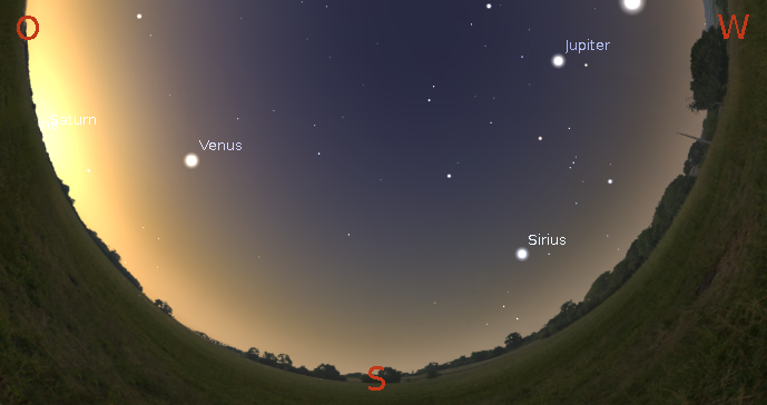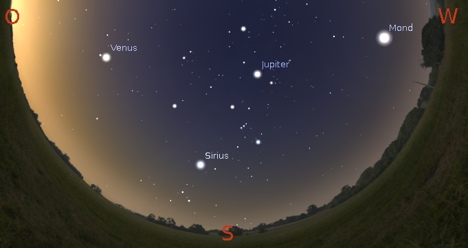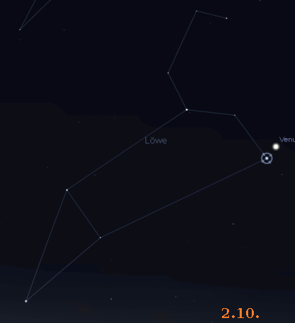 Bereits um den 3. herum ist die Venus auch als Aufsuchhilfe für den Stern Regulus im Sternbild Löwen zu verwenden. Am 3. selber kommen sich die beiden so nahe, dass es schwer sein wird, sie voneinander zu unterscheiden.
