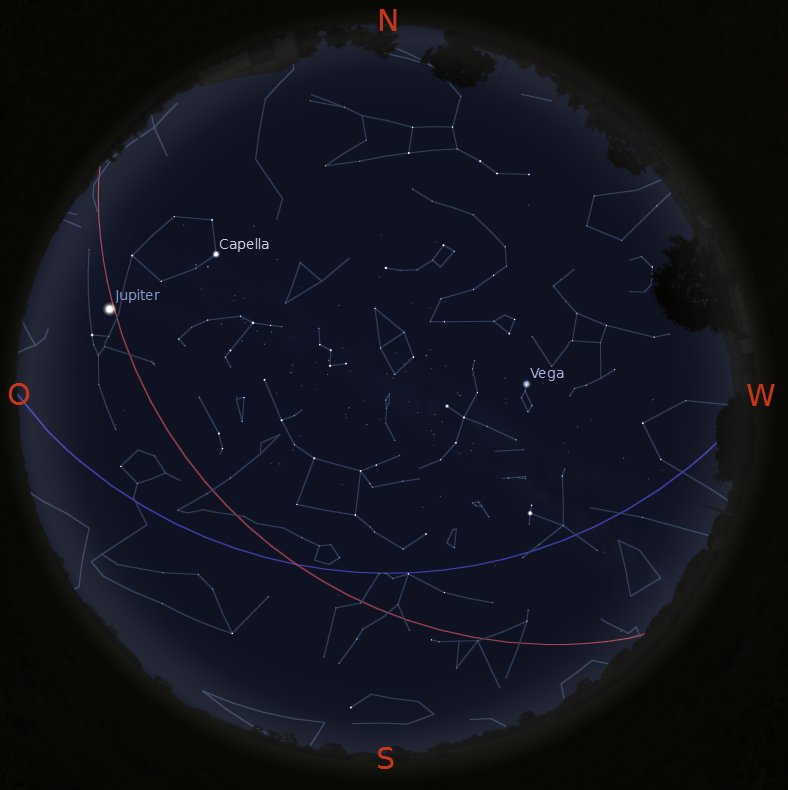Venus bleibt uns noch etwas als leuchtender „Morgenstern“ und Jupiter beherrscht den Abendhimmel. Er wird sogar noch heller, da er demnächst seine Oppositionsstellung erreicht. Er ist also von uns aus gesehen auf der anderen Seite der Sonne. Auch Mars ist bei guten Sichtbedingungen noch kurz am Abend im Südwesten zu finden.