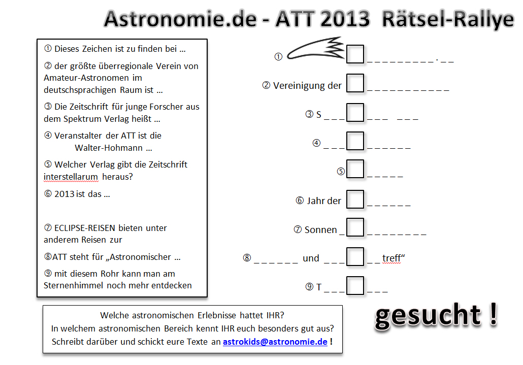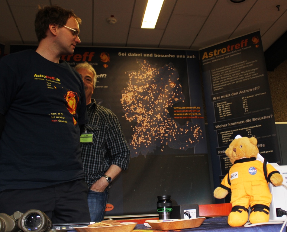 Als erstes besuchte ich den Stand von astronomie.de. Die haben sogar einen eigenen Bereich für die AstroKids. Deshalb hatten sie auch eine kleine Rätsel-Rallye vorbereitet. Leider gab es aber nichts zu gewinnen. Doch im nächsten Jahr soll es besser werden. Mal sehen, was die sich da ausdenken.