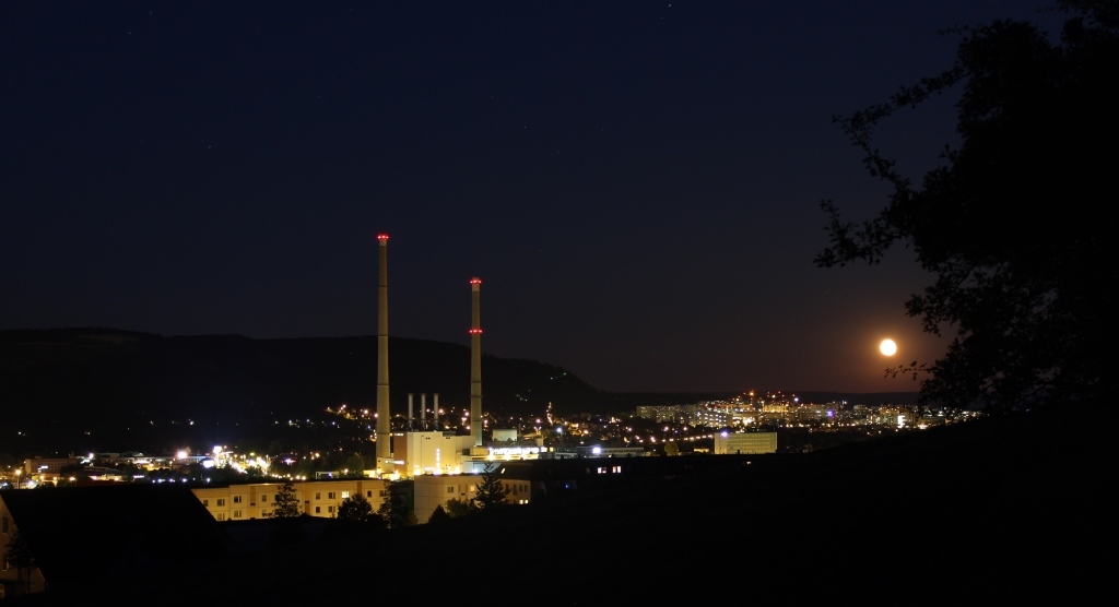 Leider hat es nicht ganz so geklappt, wie gewünscht. Die ISS war schon am Mars vorbei, als die Kamera endlich das erste Bild machte. Dann verwackelten die ersten beiden Aufnahmen auch noch, so dass die Sterne und Planeten nun etwas breit gezogen sind. In Wirklichkeit war der Himmel auch schon viel dunkler, aber dann hätte man auf dem Foto die Sterne und Umgebung nicht mehr so gut sehen können.