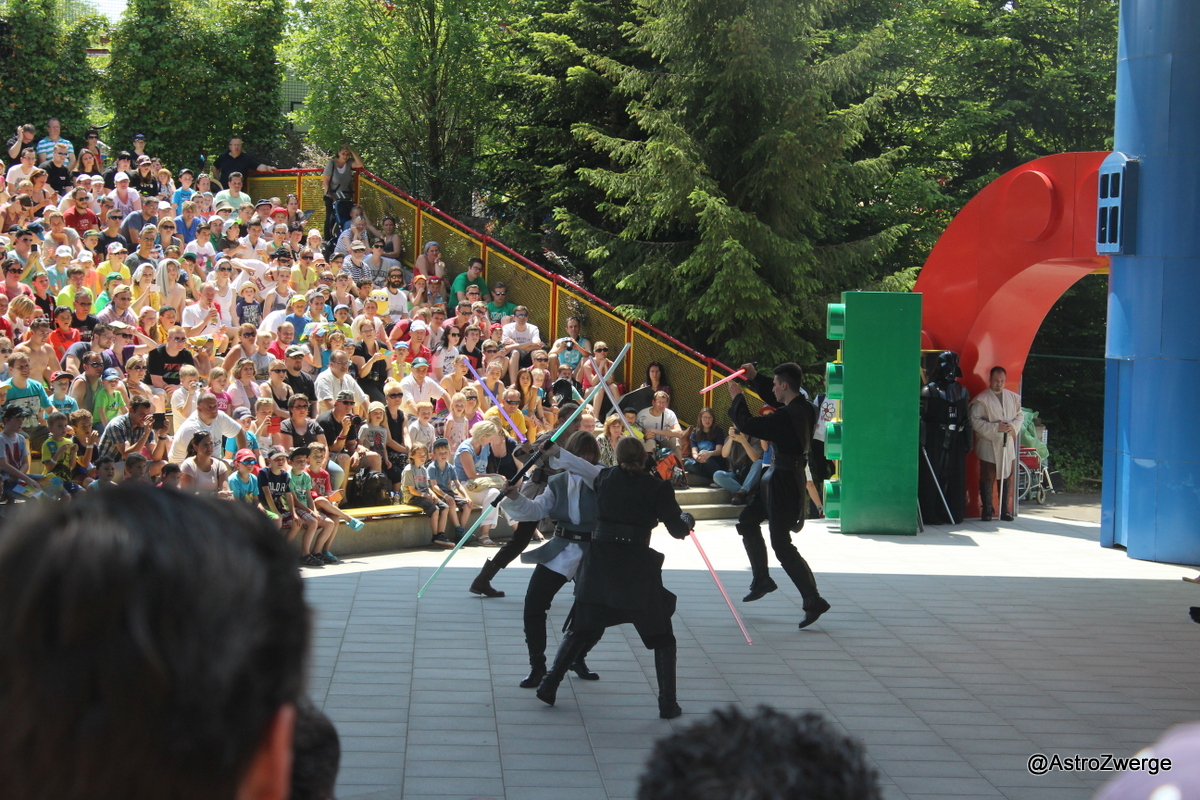 Obwohl die Sonne auf uns nieder brannte, entschieden wir uns für die Lichtschwertvorführung in der Lego-Arena. Naja, man muss sowas mögen 😉 – aber die Bewegungsabläufe waren gut einstudiert.