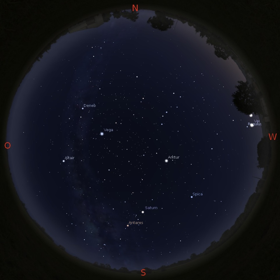 Der Planet Saturn befindet sich im Sternbild Waage und geht gegen 3 Uhr unter.