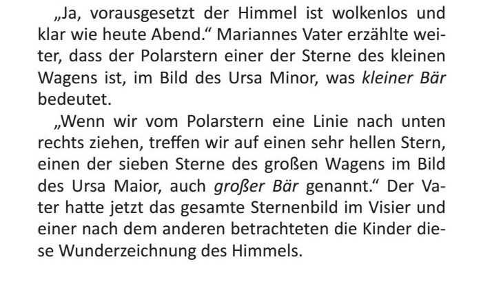 Zur Erinnerung: Marianne und ihr Vater sind kurz vor Beginn der Sommerferien umgezogen. Mit ihren neuen Freunden Michael, genannt Kugel, und Albert (dem kleinen Wissenschaftler) erlebt Marianne etliche fantastische Abenteuer. Eines Abend betrachten alle mit dem Vater die Sterne durch das Teleskop. Gemeinsam lernen sie nun viel Interessantes über das Sonnensystem und die Planeten und Kometen und Sternbilder.
