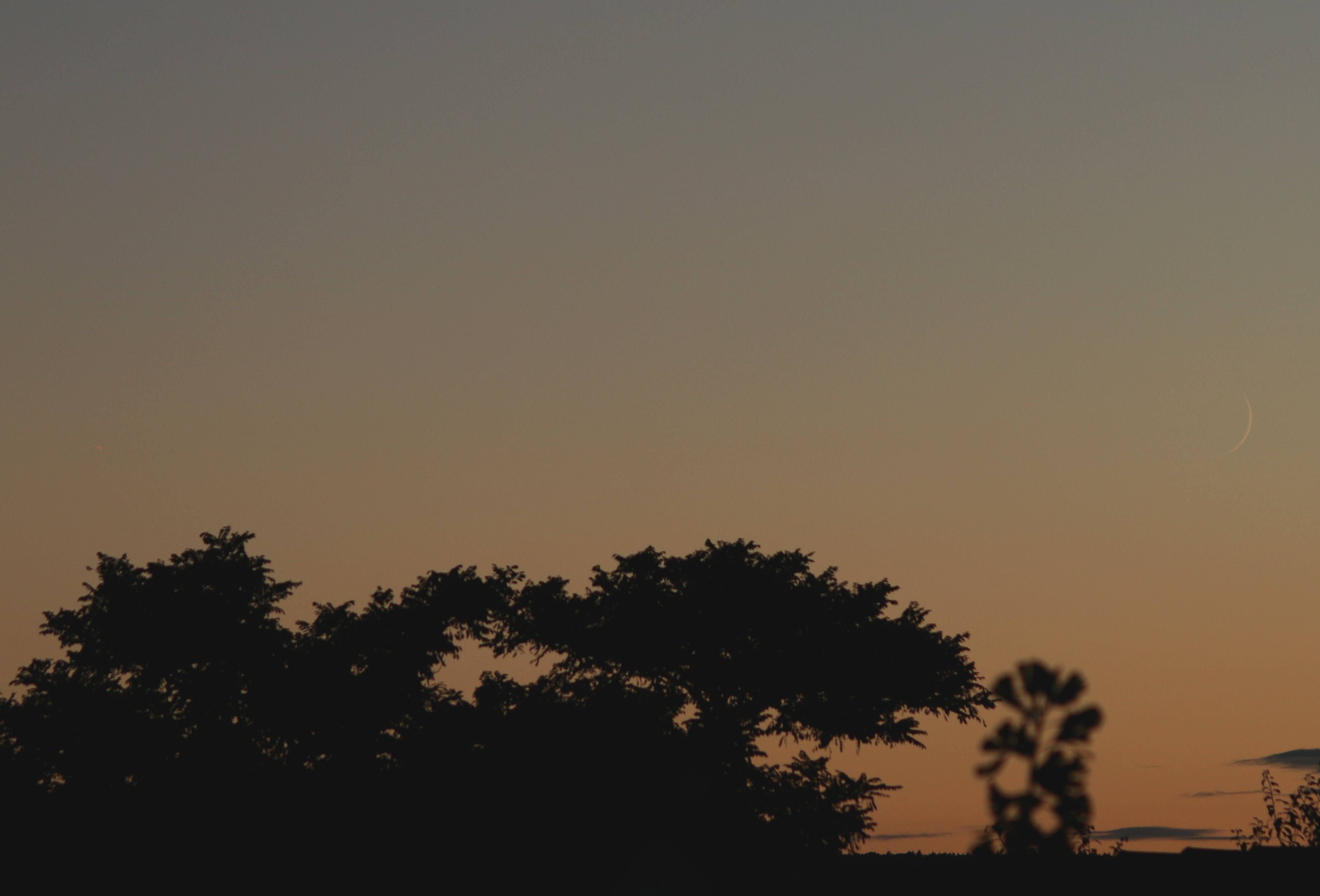 Am 2. Tag unserer Beobachtung suchten wir wirklich lange nach dem Mond und wollten die Suche schon abbrechen, als sich in der zunehmenden Dämmerung plötzlich doch noch die dünne Mondsichel zu erkennen gab. Wie war die Freude groß!