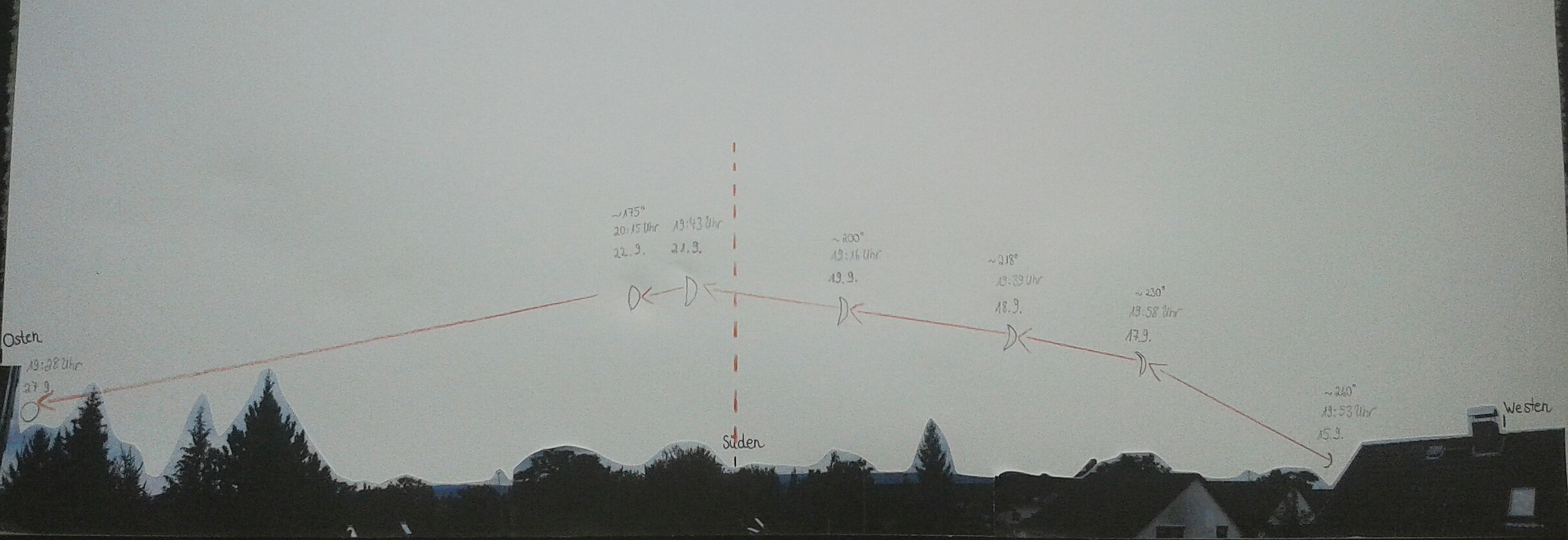 - der Mond rückt auch jeden Tag ein bisschen weiter nach Osten