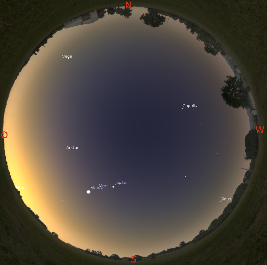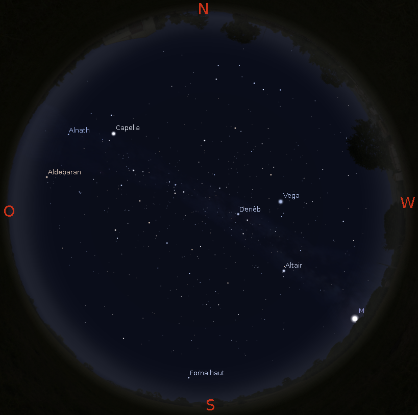 - Altair ist im Süden, Arktur im Westen und Capella im Nordosten sichtbar