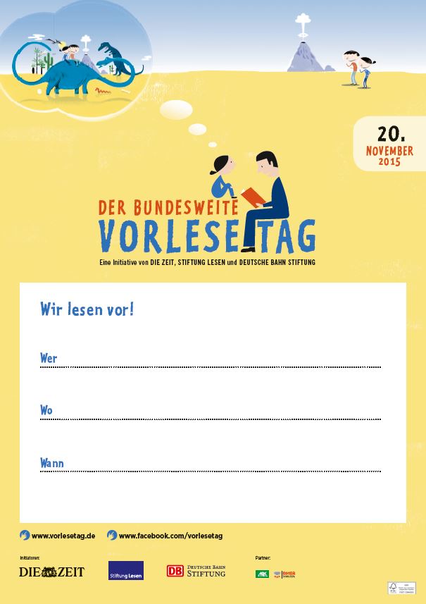- für Fotos während der Lesung, brauchen wir ein Einverständnis der Eltern —> Vordruck gibt es unter http://www.vorlesetag.de/mach-mit/downloads/ ; wollen wir das ???