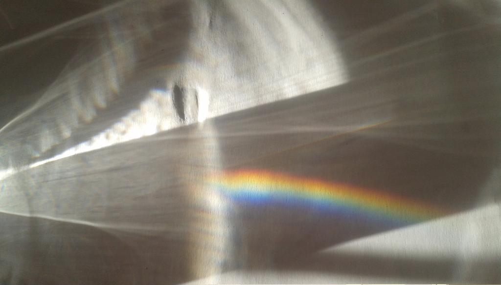 Vor ein paar Jahren konnten wir einen kleinen Regenbogen im Schatten sehen 🙂 die Lichtbrechung in einem Wasserglas projizierte dann den Bogen in den Schatten.