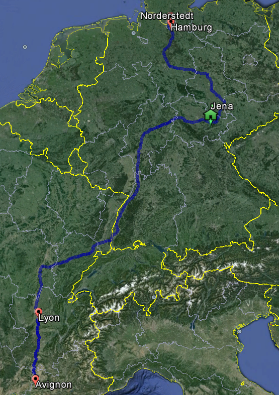 Diese 2811 km entsprechen in gerader Entfernung von Jena nach