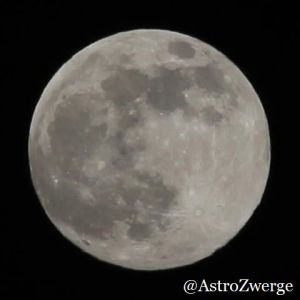 Inzwischen sind 14 Tage seit dem Neumond vergangen. Der Mond befindet sich auf der -der Sonne- entgegengesetzten Seite. Er geht -im Südosten- auf, wenn sie -im Nordwesten- unter geht und geht -im Südwesten- unter, wenn sie im Nordosten- auf geht. Während sie für uns (in der Nacht) nicht sichtbar ist, bekommt der uns zugewandte Teil des Mondes die ganze Sonnenstrahlung ab. Der Mond ist komplett zu sehen, es ist VOLLMOND.
