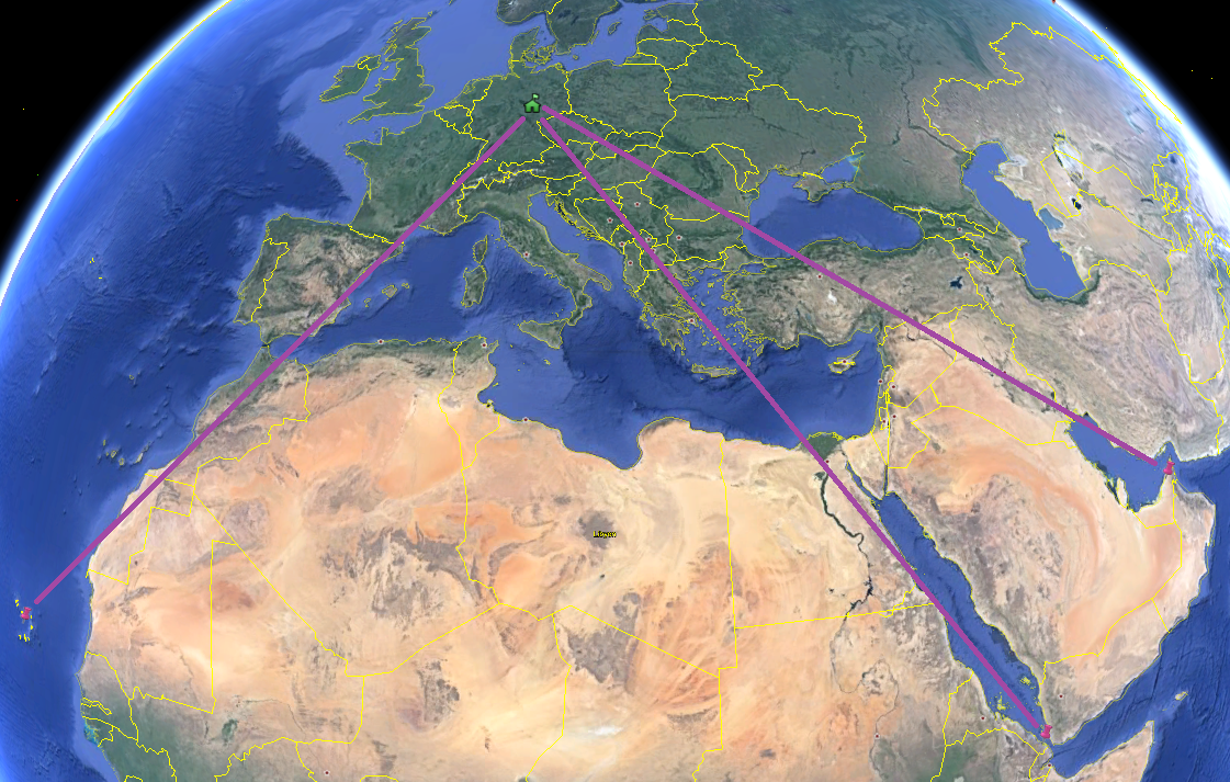 Diese 4933 km entsprechen in gerader Entfernung ungefähr der Distanz von Jena nach