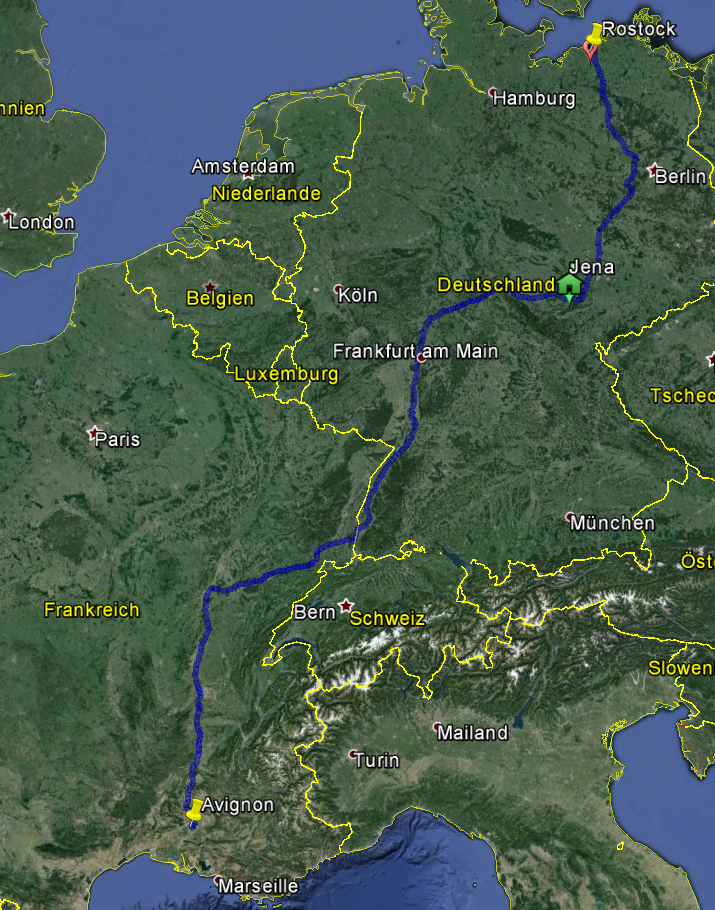 Natürlich fuhren wir wieder nach Hause. Also wieder 1214 km für die Strecke Avignon nach Jena.