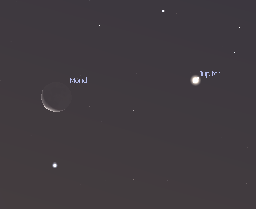 - am 25.11. treffen sich der inzwischen wieder schmale Mond und Jupiter im Osten am Morgenhimmel