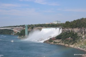 Kommen wir jetzt zur letzten Etappe auf Astros USA Reise. Auch wenn diese eigentlich zeitlich in der Mitte und nicht mehr in der USA war. Da wir nun ja schon in der Nähe der kanadischen Grenze waren, wollten wir uns auch noch die Niagara Wasserfälle ansehen. Diese befinden sich an der Grenze zwischen Kanada und den USA. Und da man von der kanadischen Seite die beste Sicht hat, haben wir halt die Grenze überquert. Jedoch brauchten wir von Maine zu den Wasserfällen einen ganzen Tag; also 12 Stunden Auto fahren … . Übrigens, der Wahlspruch von Kanada lautet „Von Meer zu Meer“, aber so weit wollten wir dann doch nicht.