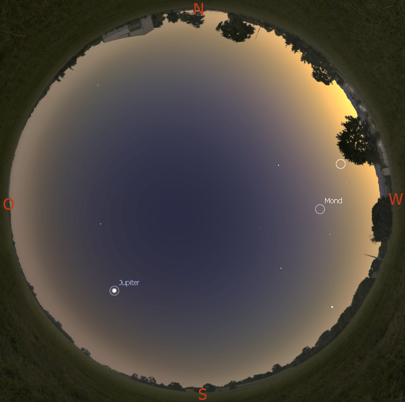 - Am 10.4. (Ostermontag) steht Jupiter in der Nähe vom Mond.