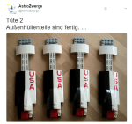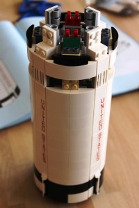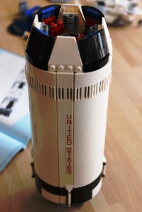 Zum Teil arbeiteten wie bisher: ich suche die Teile raus, reiche sie zu und er baut sie zusammen, teilweise montierte ich schon die Kleingruppen und manchmal verabschiedete er sich auch ganz und ich baute allein. Ab und an erlaubte sich der Zwerg kleinere künstlerische Freiheiten „Na, wir sind doch die Raketenbauer! Oder?“ Wem sie auffallen, der kann sie ja kommentieren 🙂