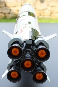 Zum Abstellen gibt es noch 3 Böcke, damit die Rakete sicher liegt. So sieht sie dann komplett aus: