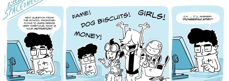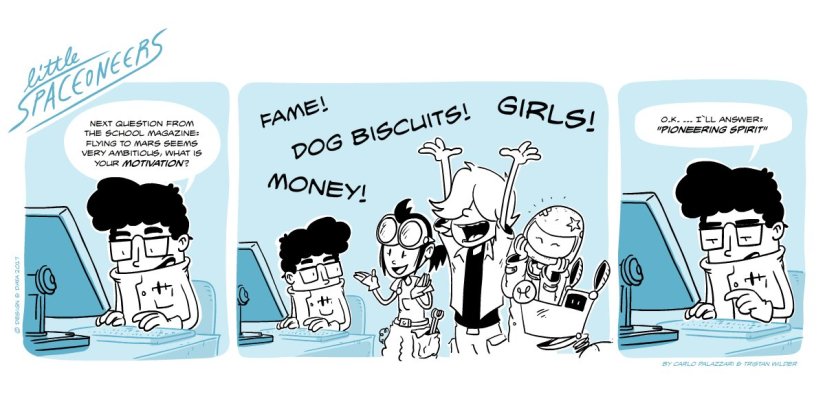 „Nächste Frage des Schulmagazines: ‚Zum Mars zu fliegen scheint doch sehr ehrgeizig zu sein. Was ist eure Motivation?‘ „