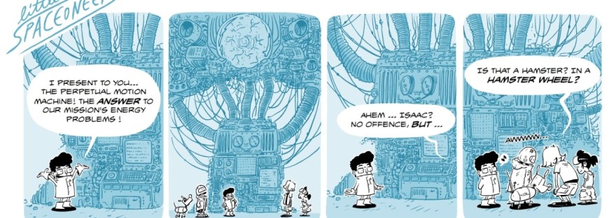 „Ich präsentiere euch … die endlos laufende Maschine! Die ANTWORT auf unser Energieproblem !“