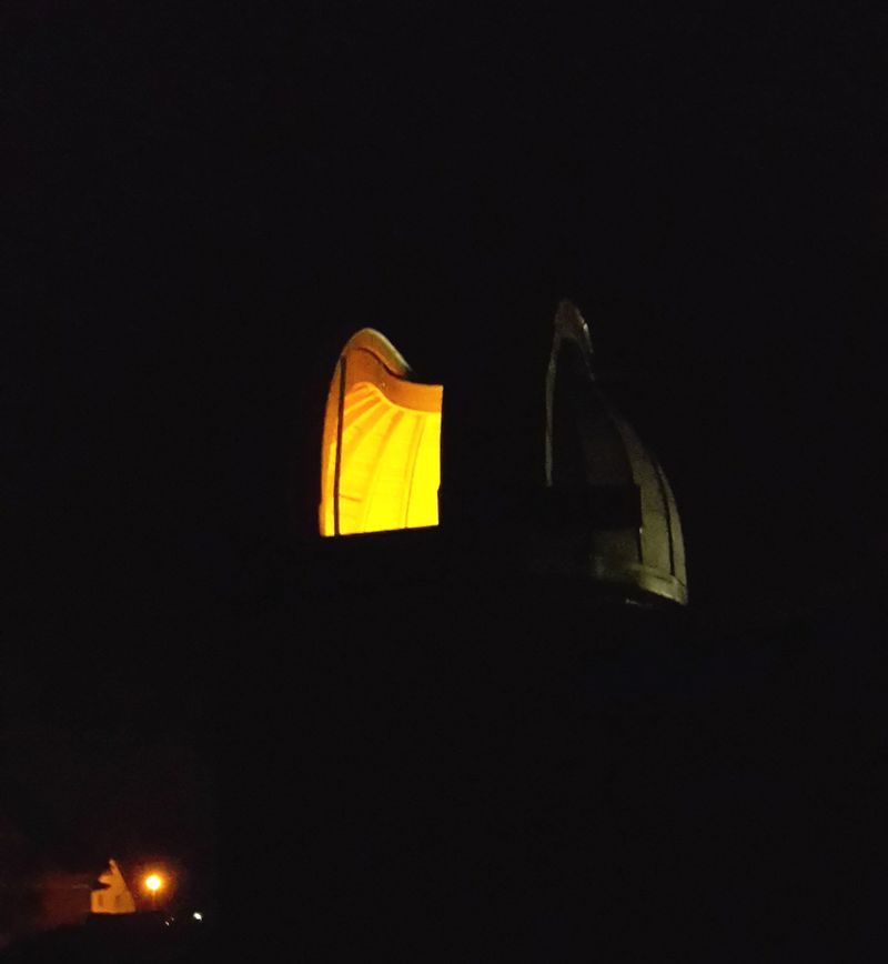 Heute öffnet die Sternwarte Meiningen im Südwesten Thüringens ihre Kuppel für uns. Sieht das helle Licht nicht einladend aus? (OK, nicht wirklich zur Beobachtung des Nachthimmels, aber der Sternwarte, oder?)