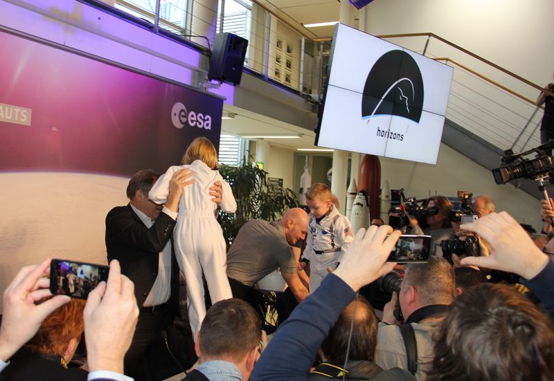 Die Reporter rennen nach vorne und machen Fotos von mir, Alexander Gerst und Joshua. Alles geht so schnell. Ich kann mich nachher gar nicht mehr so genau an alles erinnern.