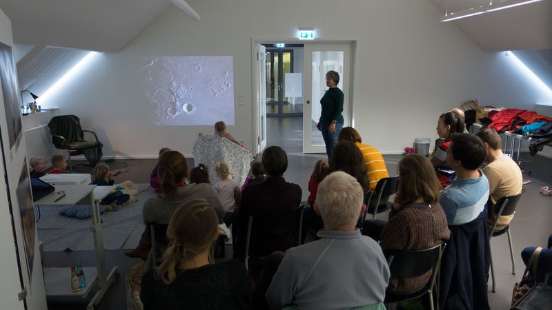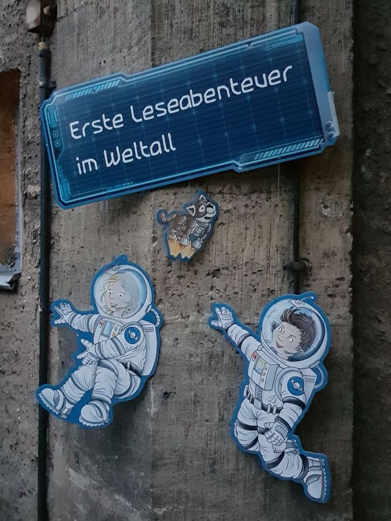 Im Planetarium waren vormittags zwei Schulklassen die von einem Parcours-Runner vorgelesen bekamen. Dann gab es zwei öffentliche Programme. Für die Größeren las der EX-Fussballstar Tobias Werner und für die Kleineren ab 4 die Münchner Autorin Ines Hirsch. Sie präsentierte ihr Buch „Mondreise“. Dazu konnten die fantasievollen Illustrationen aus dem Buch in die Kuppel gebracht werden. Falls jemand Interesse an dem Buch hat, kann man es direkt bei Frau Hirsch bestellen bzw. auch bald im Museumsshop bekommen.