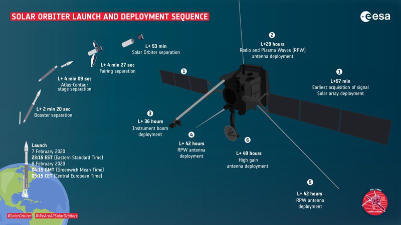 Der Solar Orbiter wird am 8. Februar um 5:15 Uhr mit einer amerikanischen Atlas V 411-Rakete in die Umlaufbahn gebracht. Das Startfenster beträgt hierfür 2 Stunden.