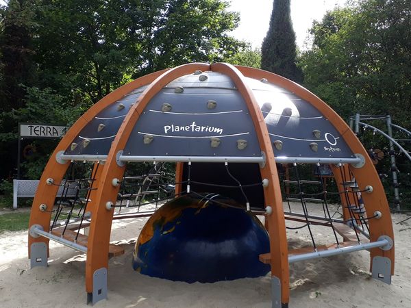 Mel hatte uns bereits bei einem der letzten #AstronomieZeit Aktionen den Familienpark ans Herz gelegt. Dort ist nun ein analoges Planetarium dazu gekommen. Von außen zum Beklettern und von innen der nördliche Sternenhimmel zum Bestaunen, während man auf der Erde sitzt. Die Sternpunkte haben Bohrlöcher und leuchten durch das einfallende Tageslicht. Der Park ist immer wieder toll!