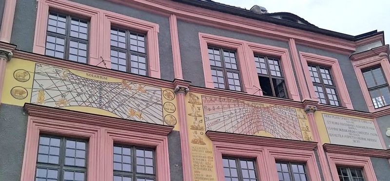 Gleich verschiedene #AstronomieZeit Objekte fotografierte „die Sternwarte Aachen“. Wir haben mal das Rathaus mit der Mondphasenuhr in unser Karte mit aufgenommen und zeigen euch natürlich auch noch den Markierungsstein zum 15. Meridian und die Fassade der Ratsapotheke in Görlitz. An ihrer Fassade sind zwei Sonnenuhren abgebildet. Die linke zeigt bürgerliche, italienische und babylonische Stunden an. Auf der rechten kann man Planetenstunden ablesen.