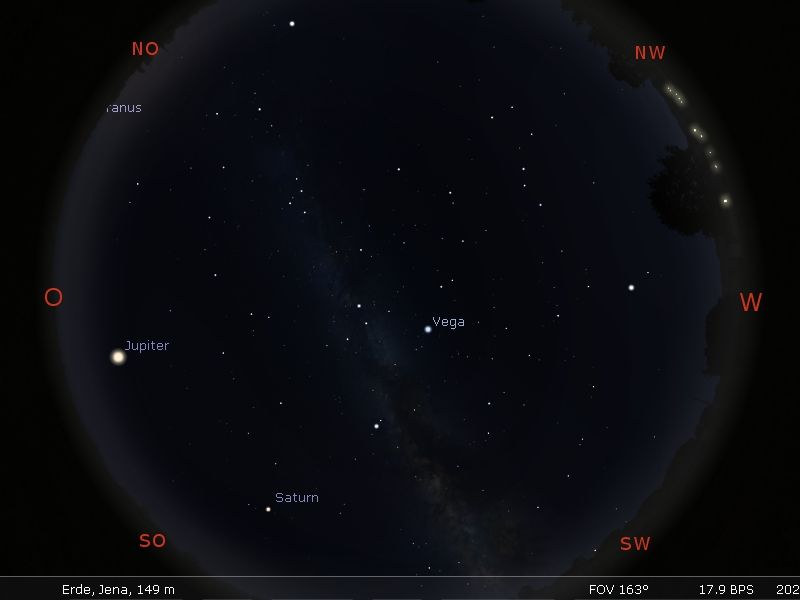 Saturn ist noch vor Jupiter sichtbar, aber nicht so leuchtstark..