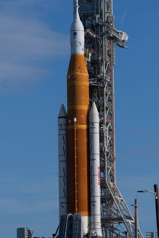 Trotzdem ist es ein besonderes Ereignis, wenn nun für die Mission #Artemis I eine riesige Trägerrakete namens Space Launch System (kurz SLS) abhebt. Oben drauf befindet sich das Raumschiff Orion und das Europäische Servicemodul (ESM).