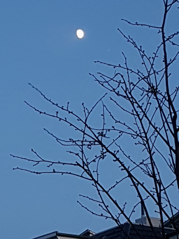Ich habe erst mit ’ner blöden Erkrankung zu kämpfen gehabt, aber dann schon Mitte des Monats meinen Urlaub begonnen. So konnte ich vor Weihnachten in wolkenfreien Momenten die „Besuch“ des Mondes beim Planeten Jupiter beobachtet. Für einen Blick durchs Teleskop hat es dann aber doch nicht gereicht.