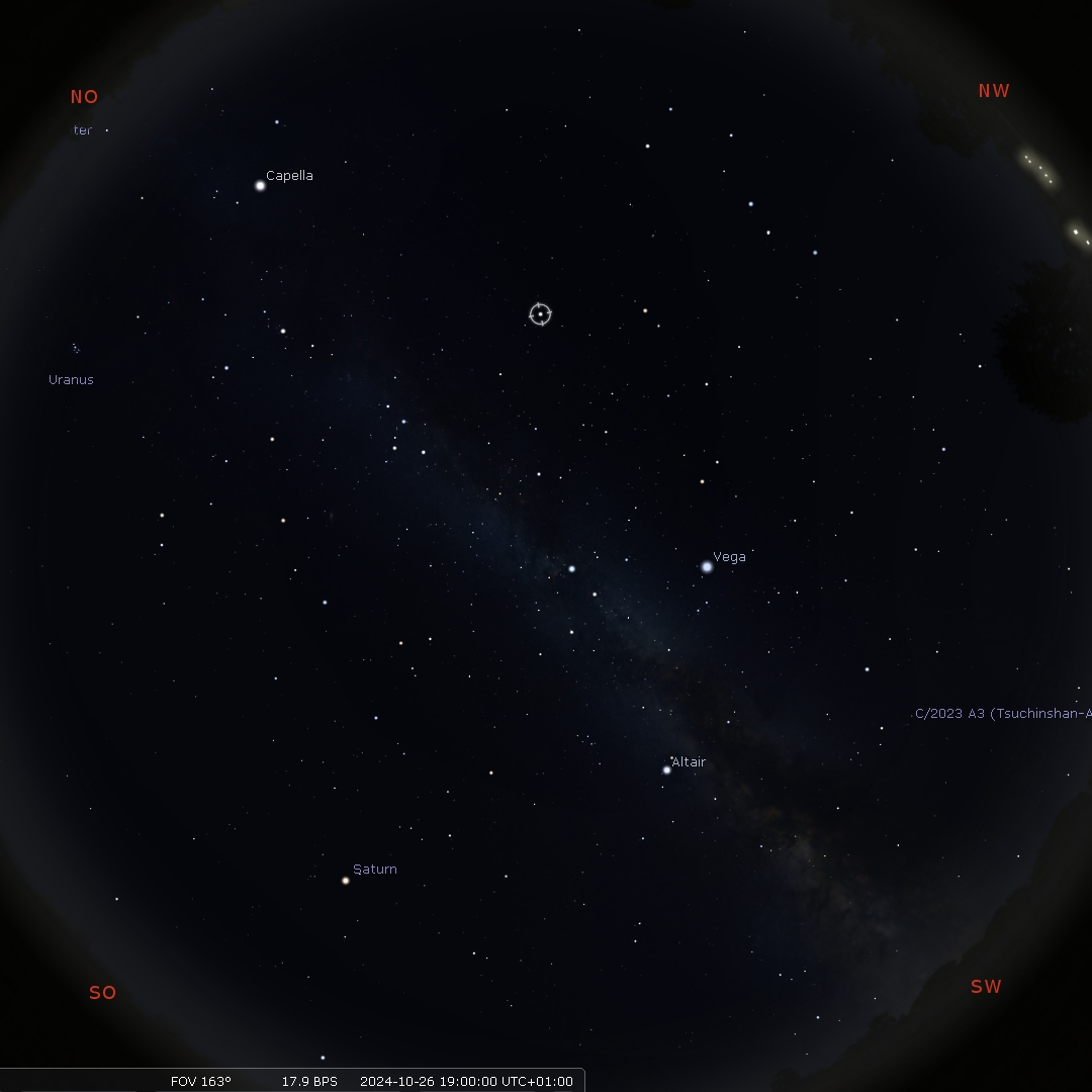 - das Sommerdreieck mit Vega, Altair und Deneb sind mehr im Zentrum