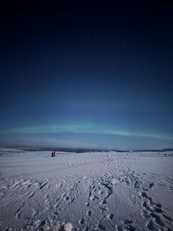 Schon am ersten Abend konnten wir mit Hilfe des Handys die ersten schwach leuchtenden Polarlichter ausmachen. Später machte uns die Kombination aus Wolken und eher pessimistischer Aurora‑App einen Strich durch die Rechnung, und selbst bei den Nordlichtsafaris mit Bus oder Schneemobilschlitten hatten wir kein Glück. Wenn andere Miturlauber am Frühstückstisch dann doch von nächtlichen Sichtungen erzählten, war das schon ein bisschen frustrierend – auch wenn wir uns nichts anmerken ließen.
