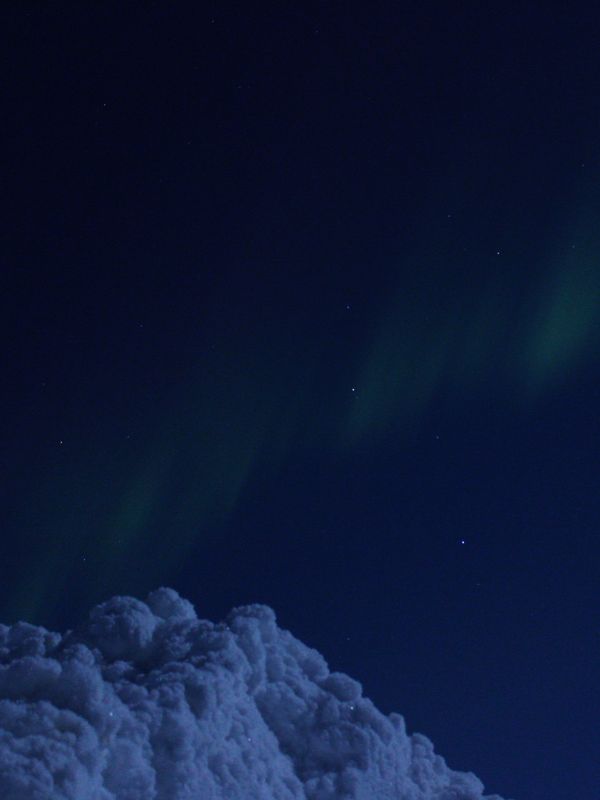Wieder im Hotel angekommen hatte sich das Band verschoben und formte einen breiten Bogen, aus dem sich langsam fast einem Herz gestaltete. Doch trotzdem – und weil der Effekt wieder schwächer wurde – war erstmal war aufwärmen und Abendessen angesagt, um anschließend gleich wieder Ausschau zu halten.