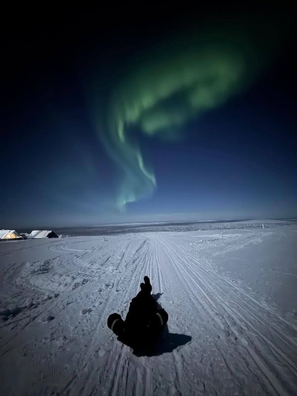 Aber ganz ehrlich, die Polarlichter waren das Highlight. Auch wenn Schneemobiltour, Huskyschlittenfahrt, Schneeschuhwanderung und die Rentierfarm ihren ganz eigenen, besonderen Charme hatten und wir die Sichtung von Polarlichtern von vornherein als Add‑on betrachteten – die Wettervorhersage meldete 100 % Bewölkung, und der Vollmond war auch nicht hilfreich – war der Anblick dieses Naturspektakels umwerfend.