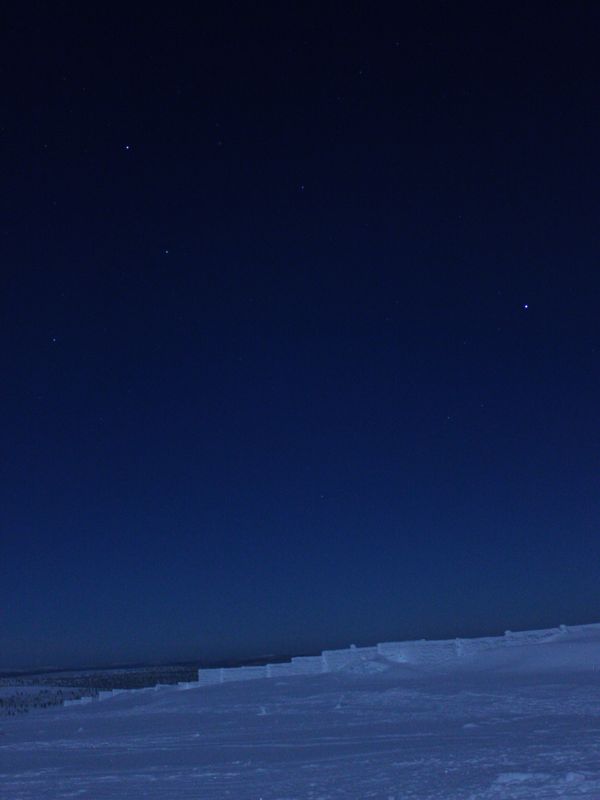 Gleichzeitig ist die Nacht im Winter lang genug, dass Sternbilder sichtbar werden, die bei uns eher typischerweise zu verschiedenen Jahreszeiten zu sehen sind. Der Himmel wirkt dadurch wie eine komprimierte Version des ganzen Jahres: ein Stück Frühling im Osten, ein Rest Sommer im Nordwesten, dazu der volle Winterhimmel im Süden und Südosten – alles in einer einzigen Polarnacht.