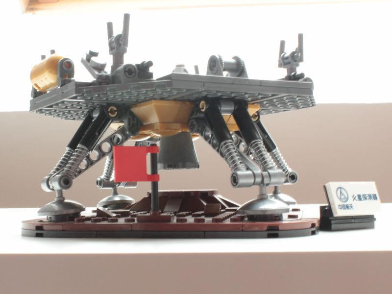 Das Set zeigt als Basis die Marslandschaft. Auf ihr steht stabil der Lander mit seinen vier Beinen und da drauf gut fixiert – wie bei der realen Landung – Zhurong.